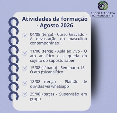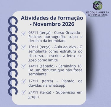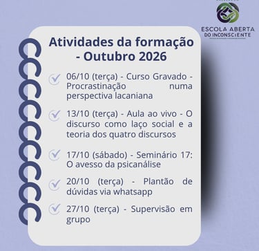 SEMINÁRIOS CLÍNICOS DO PERCURSO DE FORMAÇÃO EM PSICANÁLISE DA ESCOLA ABERTA DO INCONSCIENTE